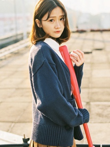 天台上的棒球少女超短裙秀发飘逸性情温柔